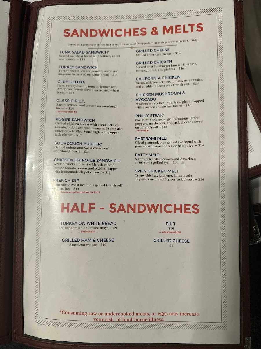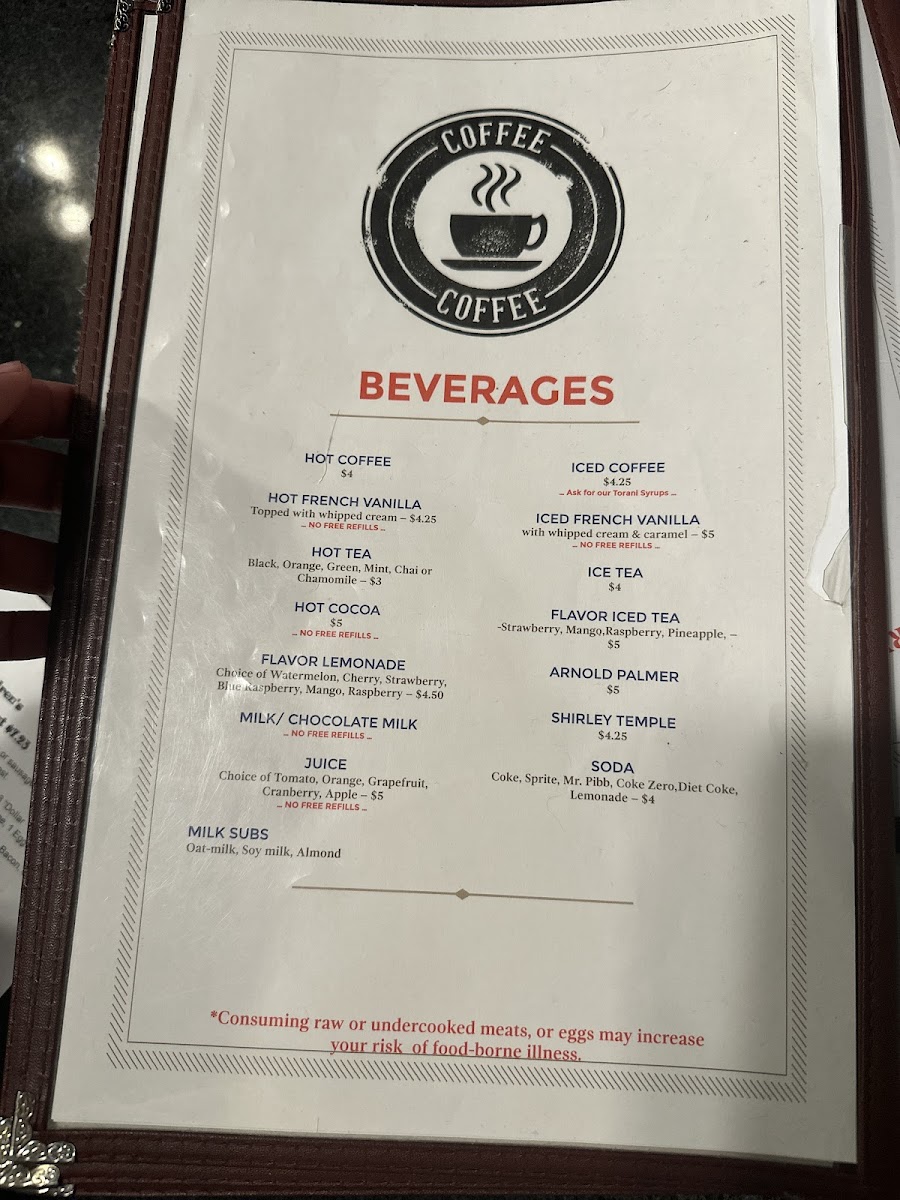 The café also features a variety of hearty burgers and sandwiches, making it a comfortable spot for casual lunch outings. Simple sides like home fries and bacon strips round out the meals, adding to the feeling of an unhurried, satisfying dining experience. The coffee and other classic comforting drinks serve as a natural accompaniment, fitting effortlessly into the easygoing vibe of the place.