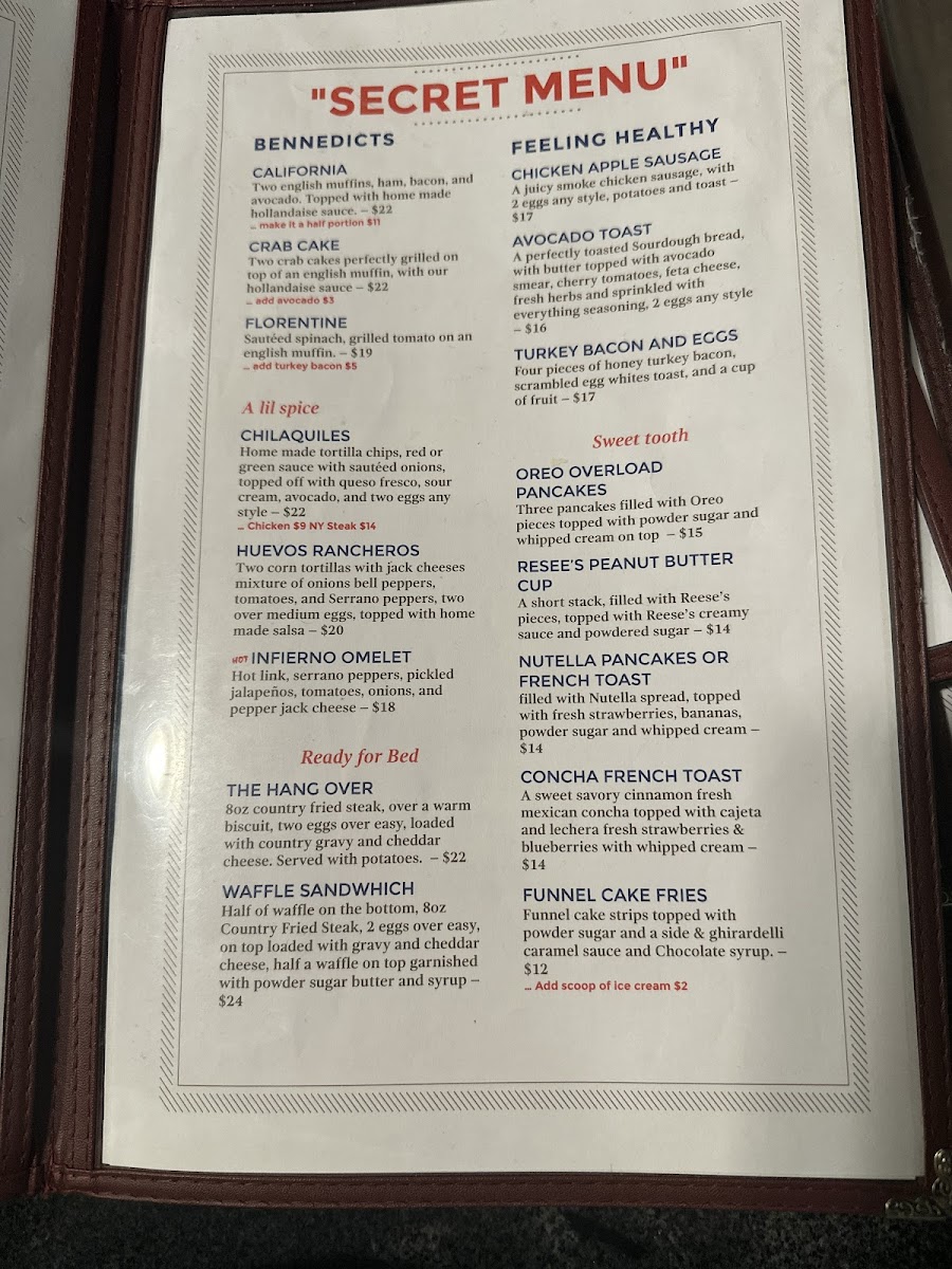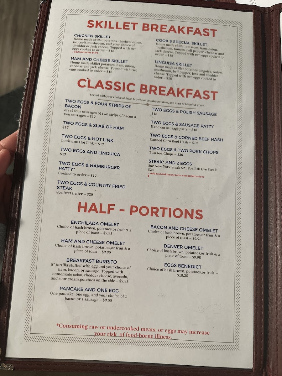 Guests can expect to find a selection of skillet breakfasts brimming with fresh ingredients and topped with eggs cooked to order. Classic options like omelets, country scrambles, and various takes on eggs and meat provide generous portions that invite leisurely morning visits. For those looking for a sweeter start or midday treat, dishes such as the bacon pecan waffle or French toast combo offer gentle indulgences in a relaxed environment.